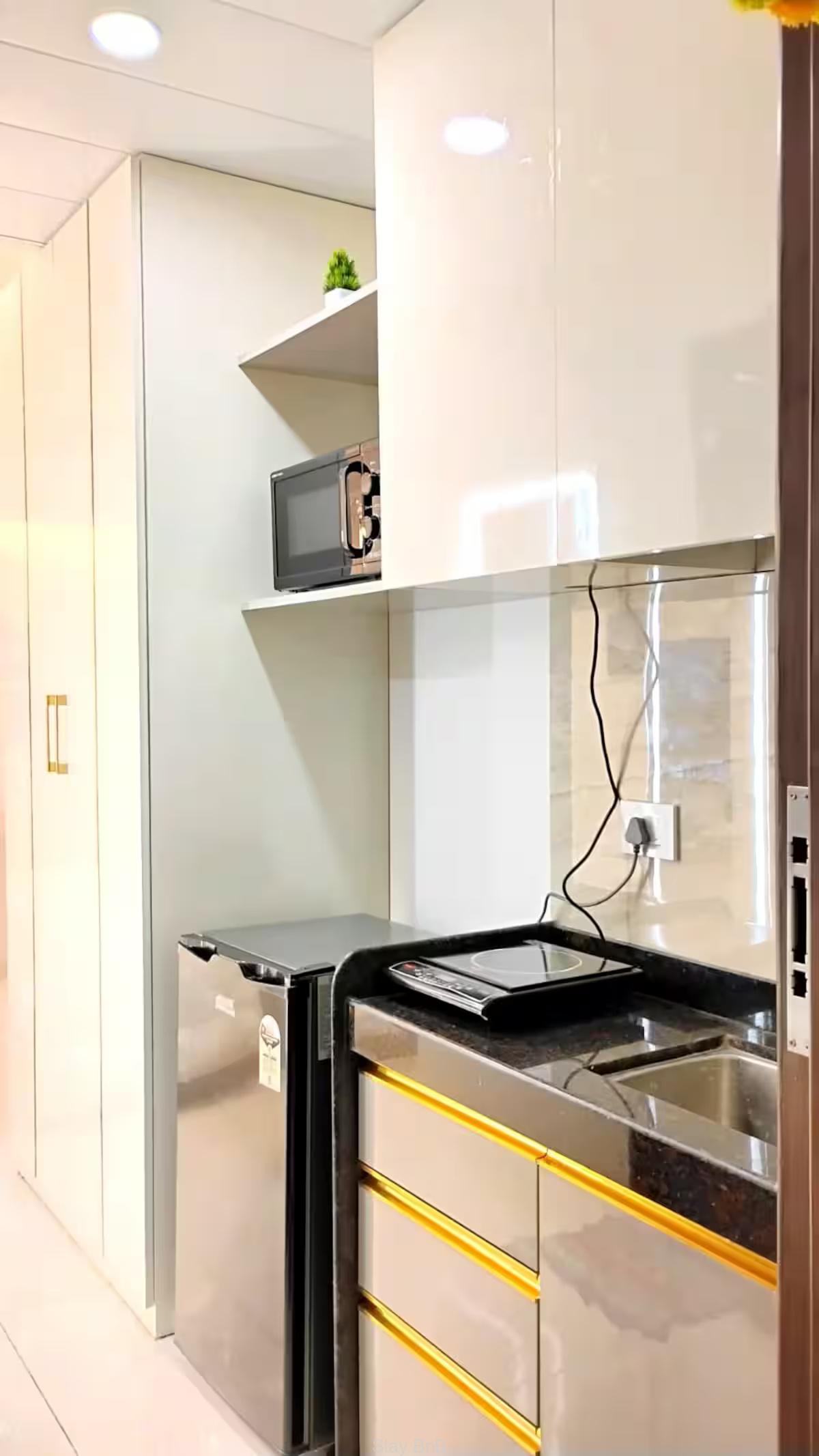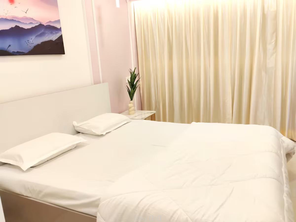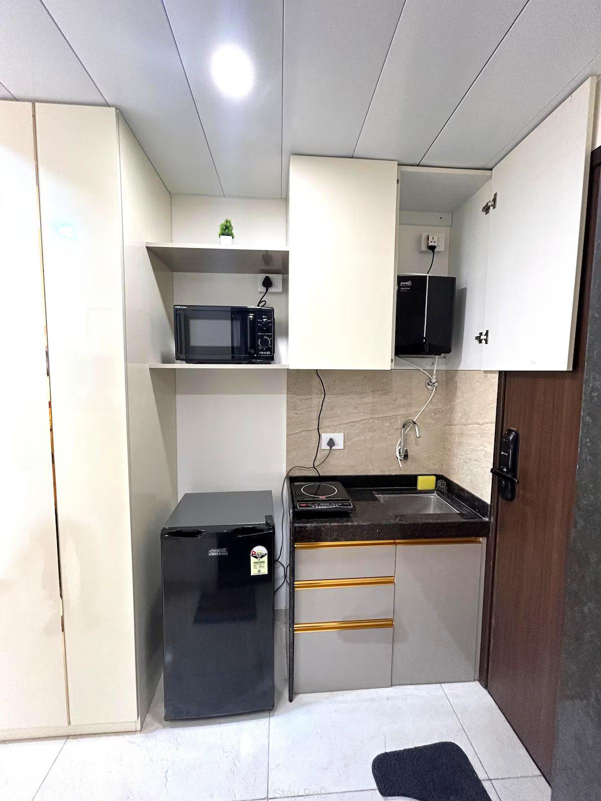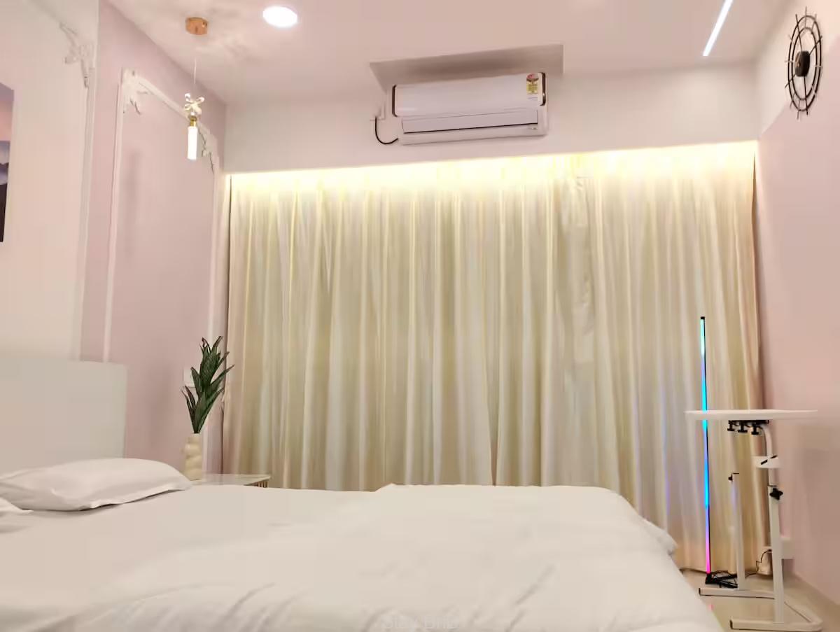 Welcome to our stylish, air-conditioned studio, perfect for 2 guests! Enjoy this home away home that boasts 200 sq. ft. carpet area and features a big smart LED TV, and all essential furniture and equipments. Enjoy the every corner of this flat that is thoughtfully interior designed. This fully furnished service apartment in Pashan Pune is perfect for expatriates, corporate professionals or business professionals. Floor ceiling windows of this apartment offers panoramic and forest mountain views and ample natural light that makes guest feel fresh. The windows wall of spacious living room is covered with silver color curtains. Additionally, flat screen LED TV is available on this apartment for entertainment purpose. Plush sofa set enhance the look of the living room. Good quality of appliances are available on this service apartment for hassle free living like washing machine, Refrigerator, Cook top, AC, etc.