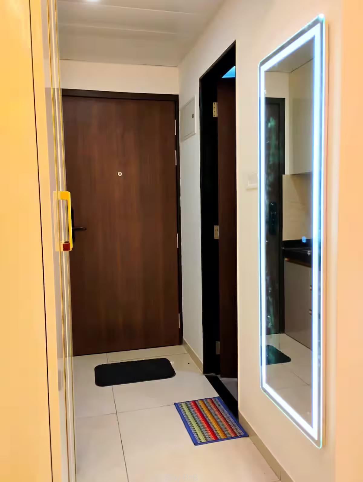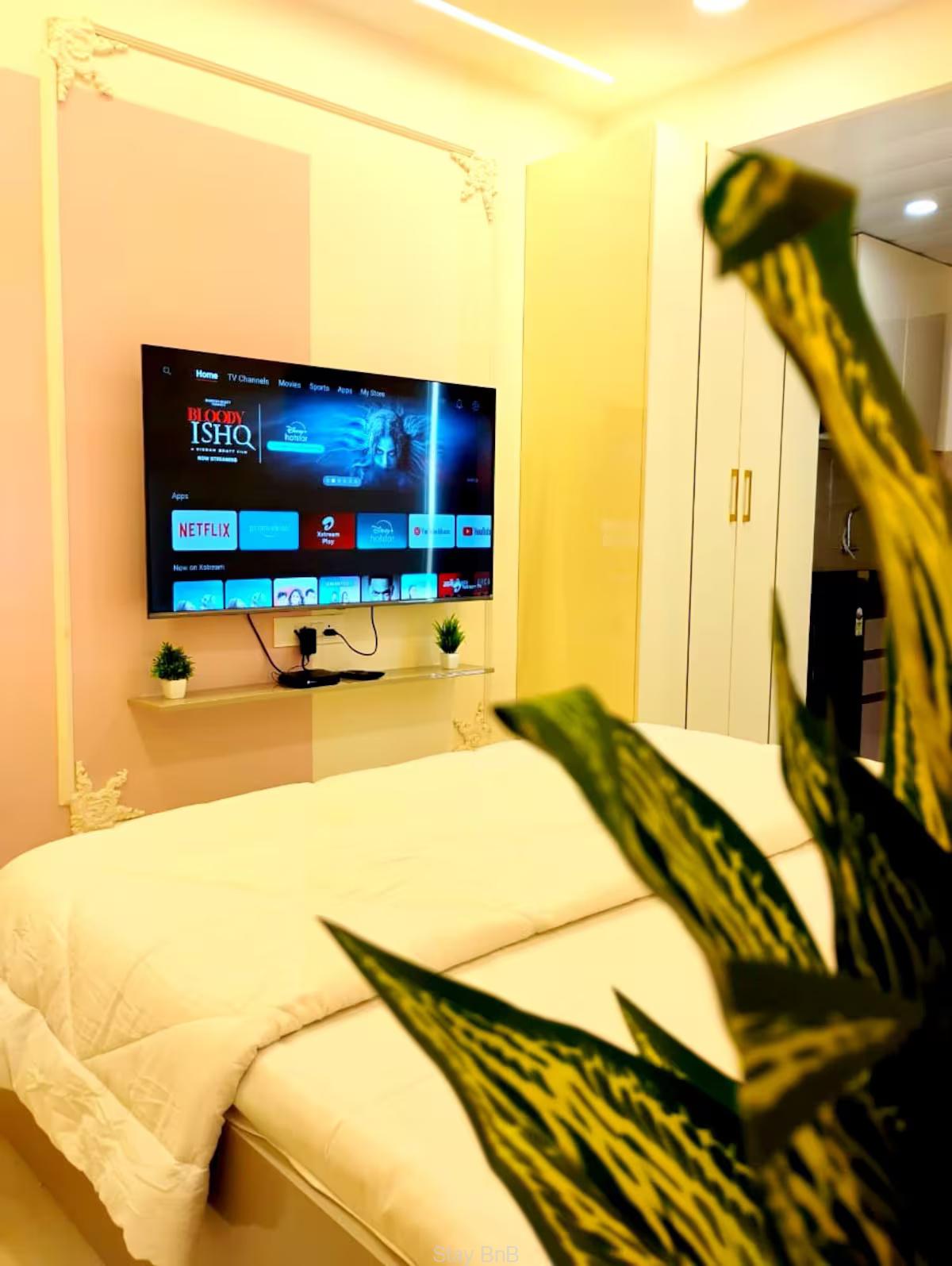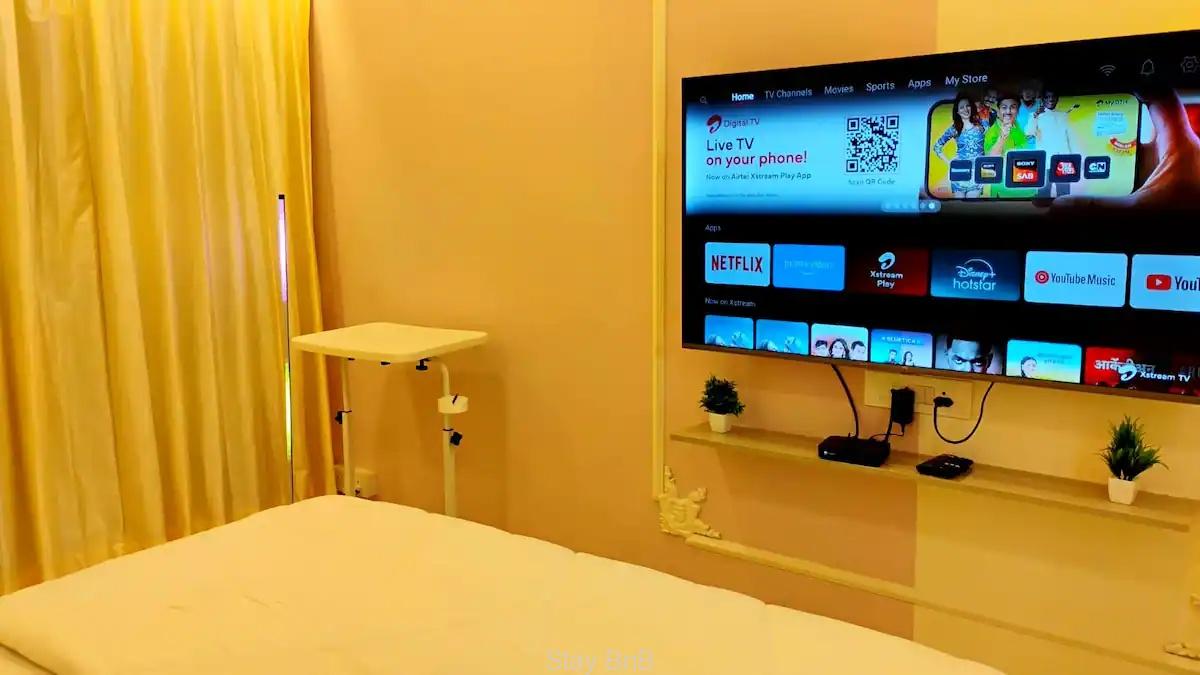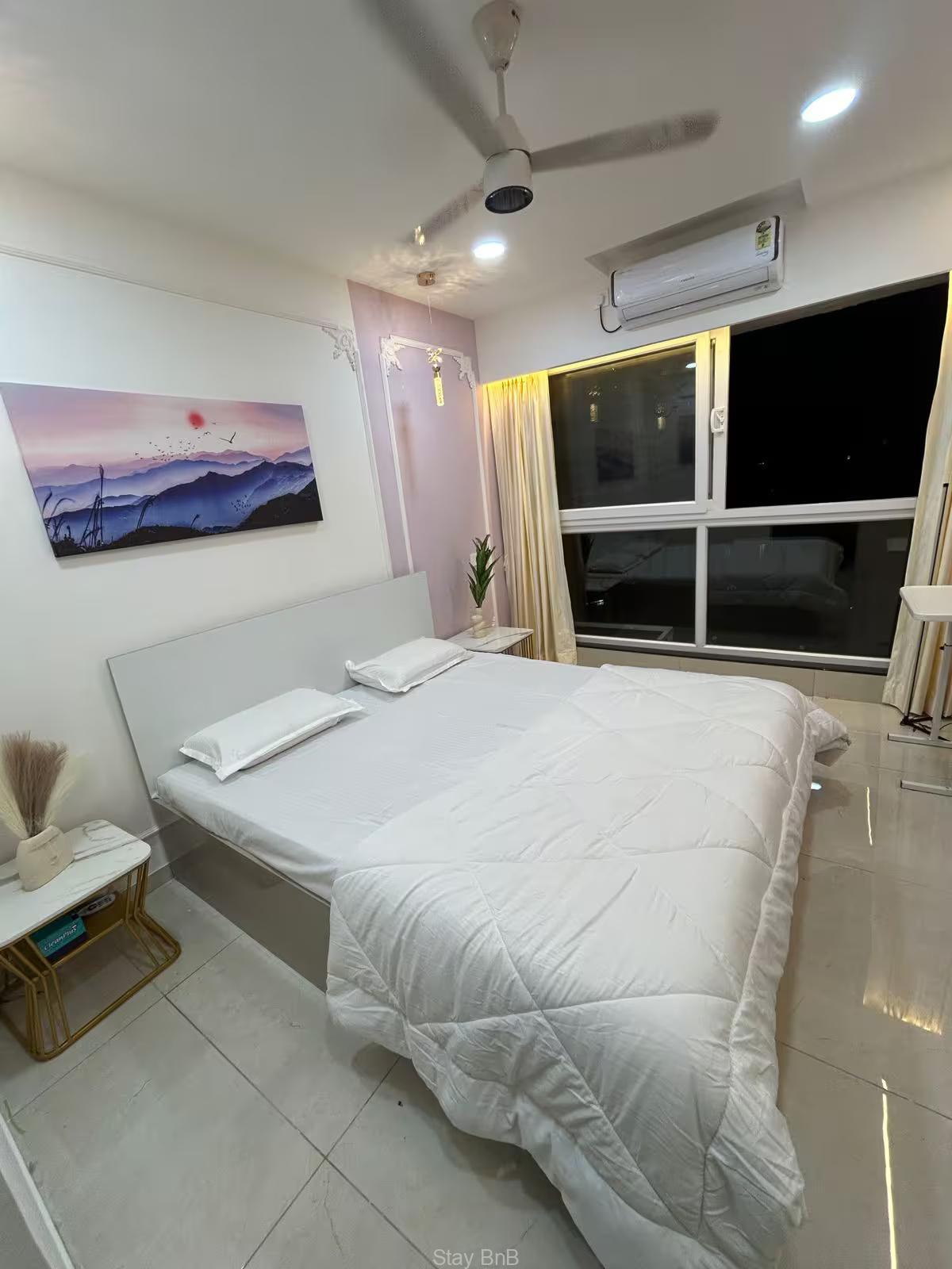 Welcome to our stylish, air-conditioned studio, perfect for 2 guests! Enjoy this home away home that boasts 200 sq. ft. carpet area and features a big smart LED TV, and all essential furniture and equipments. Enjoy the every corner of this flat that is thoughtfully interior designed. This fully furnished service apartment in Pashan Pune is perfect for expatriates, corporate professionals or business professionals. Floor ceiling windows of this apartment offers panoramic and forest mountain views and ample natural light that makes guest feel fresh. The windows wall of spacious living room is covered with silver color curtains. Additionally, flat screen LED TV is available on this apartment for entertainment purpose. Plush sofa set enhance the look of the living room. Good quality of appliances are available on this service apartment for hassle free living like washing machine, Refrigerator, Cook top, AC, etc.