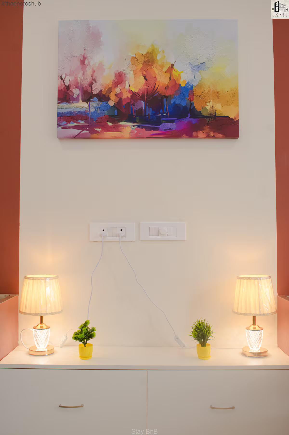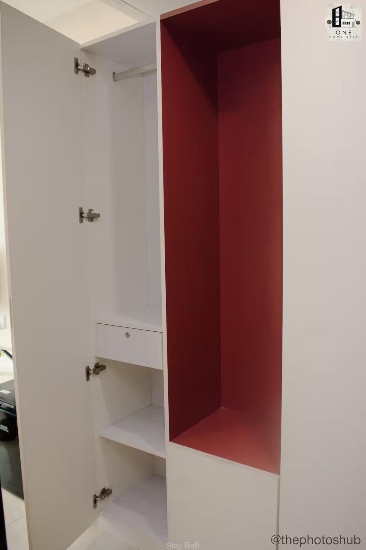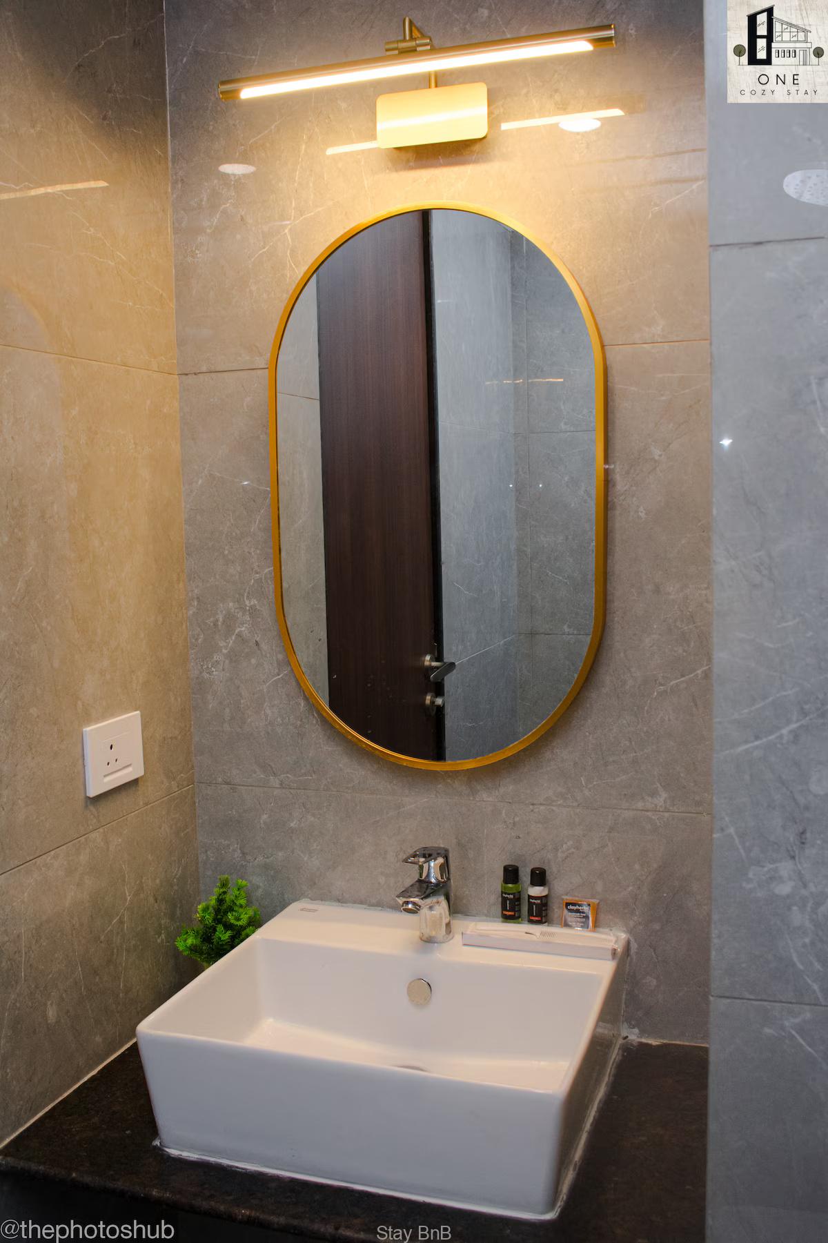 Every corner of this flat is thoughtfully interior designed with a calm color combinations. This fully furnished apartment in Pashan Pune is perfect for expatriates, corporate professionals or business professionals. Floor ceiling windows of this apartment offers panoramic green views and ample natural light that makes guest feel fresh. This service apartment equipped with flat screen LED TV, wall mount table beside the TV, aesthetic yellow color lamps. Good quality of appliances are available on this service apartment for hassle free living. Good quality of washing machine, Refrigerator, Cook top, microwave, AC, etc., available on this apartment for trouble free living.