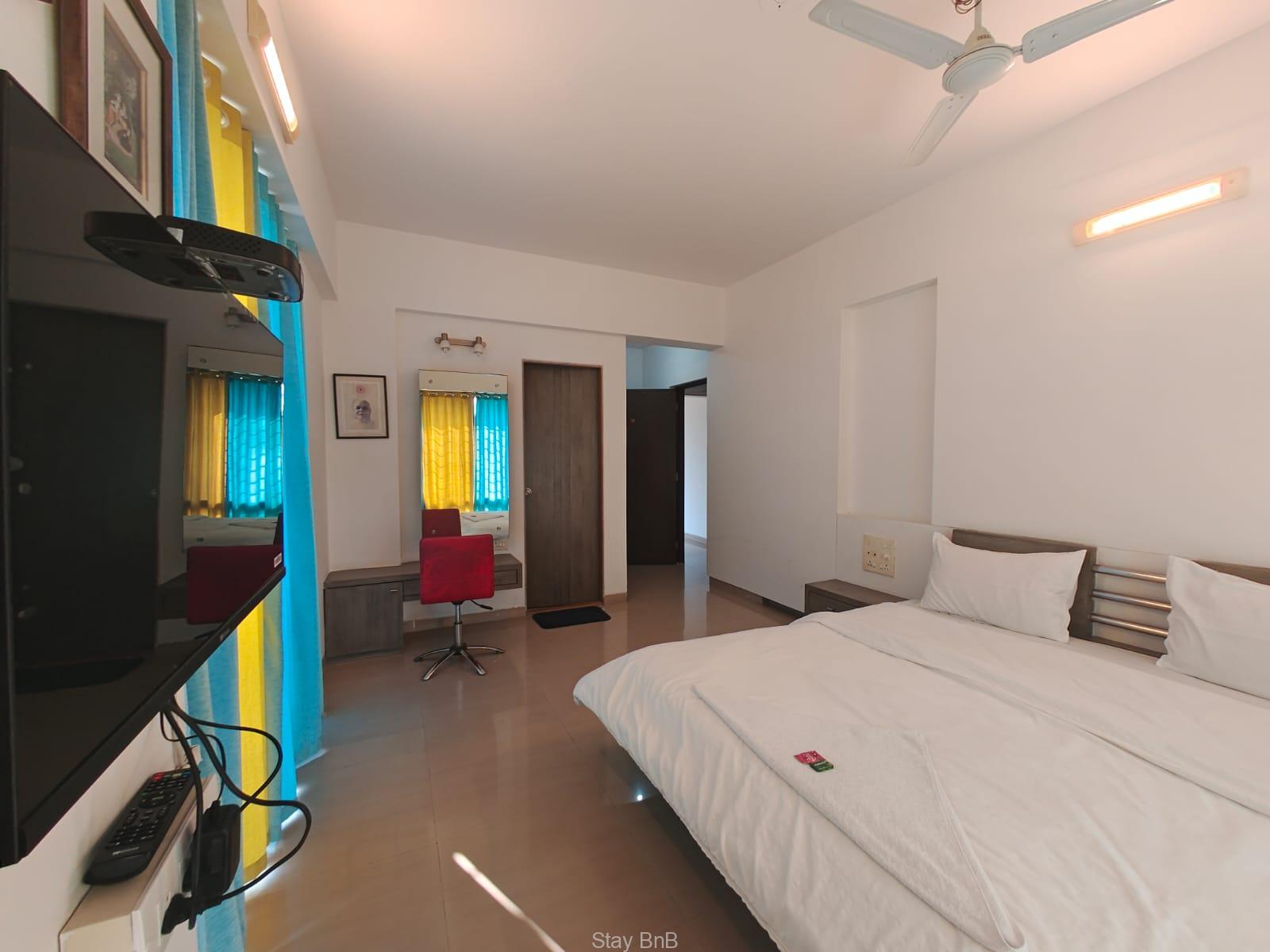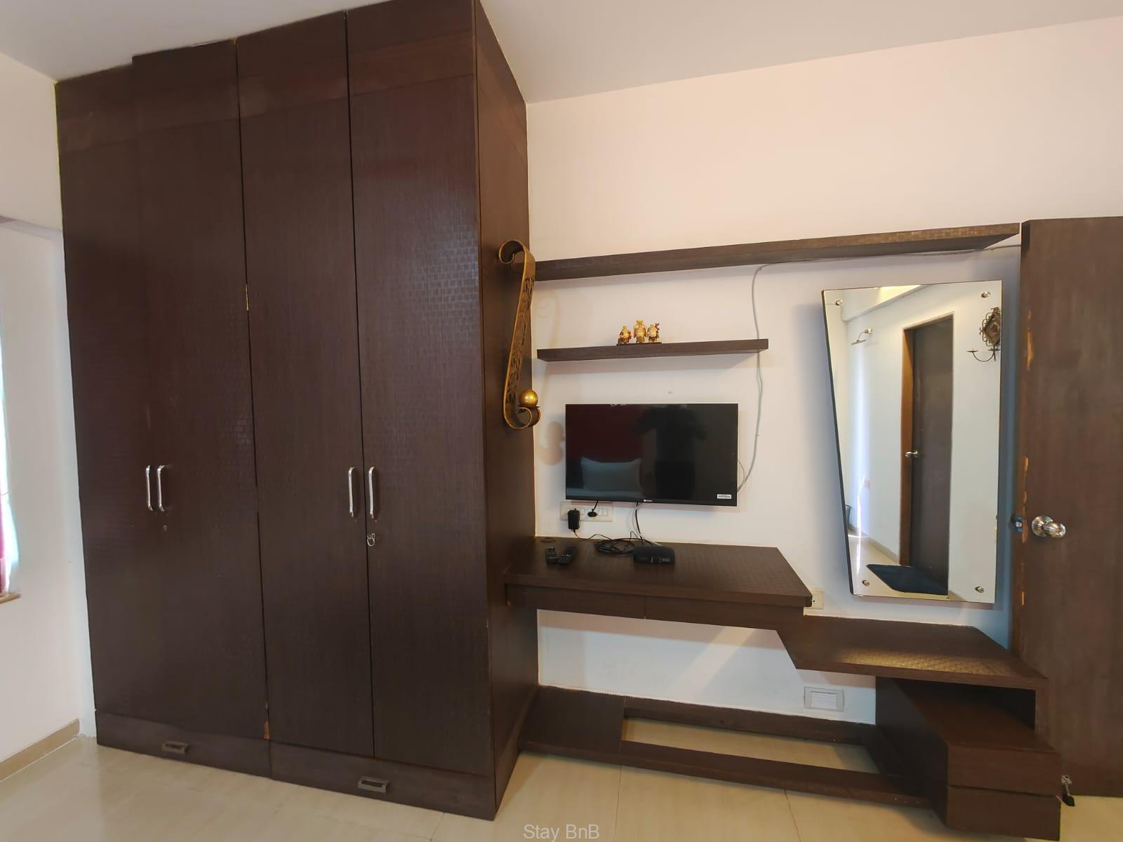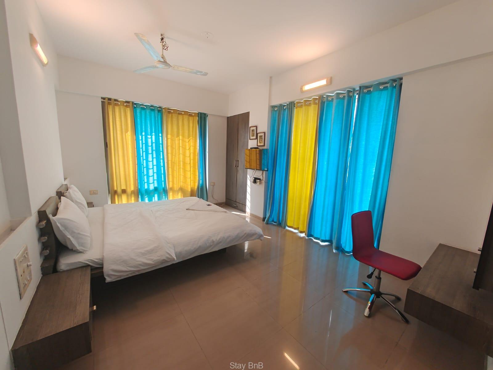 StayBnB offers 3bhk service apartments with kitchen in Viman Nagar for Corporate families, NRI Families, Foreign Expats and corporates group booking. Book this beautiful and specious 3BHK service apartments with 3 bedrooms . The apartments is 1200 sq ft with 2 attached washrooms and 1 non attached . All 3 Rooms in service apartments at our Ganpati chowk Viman Nagar, Pune. Its beautiful society with 24/7 Security guards, CCTV in Lift and Common areas.