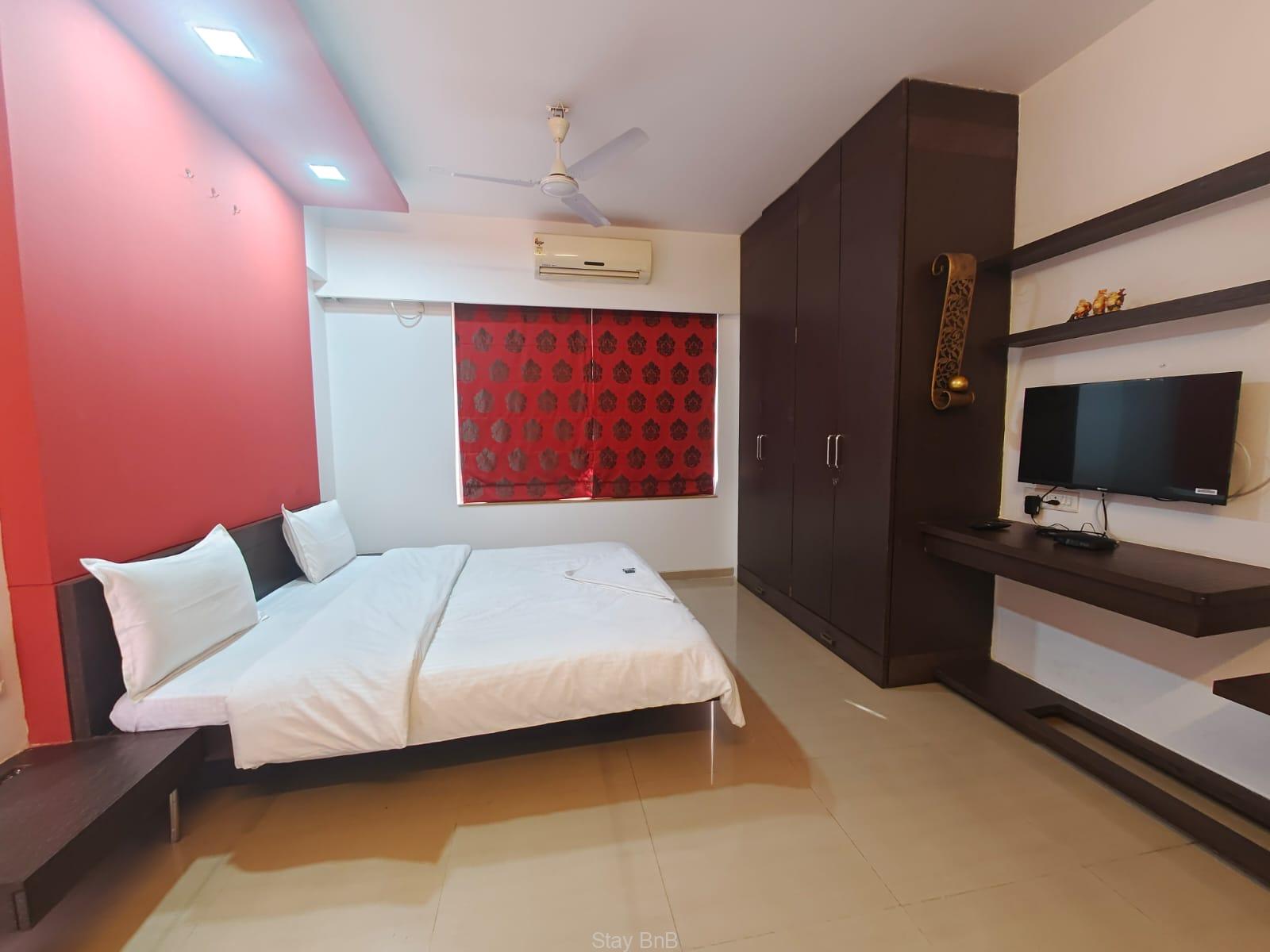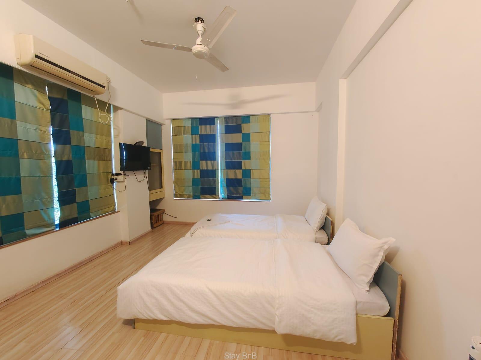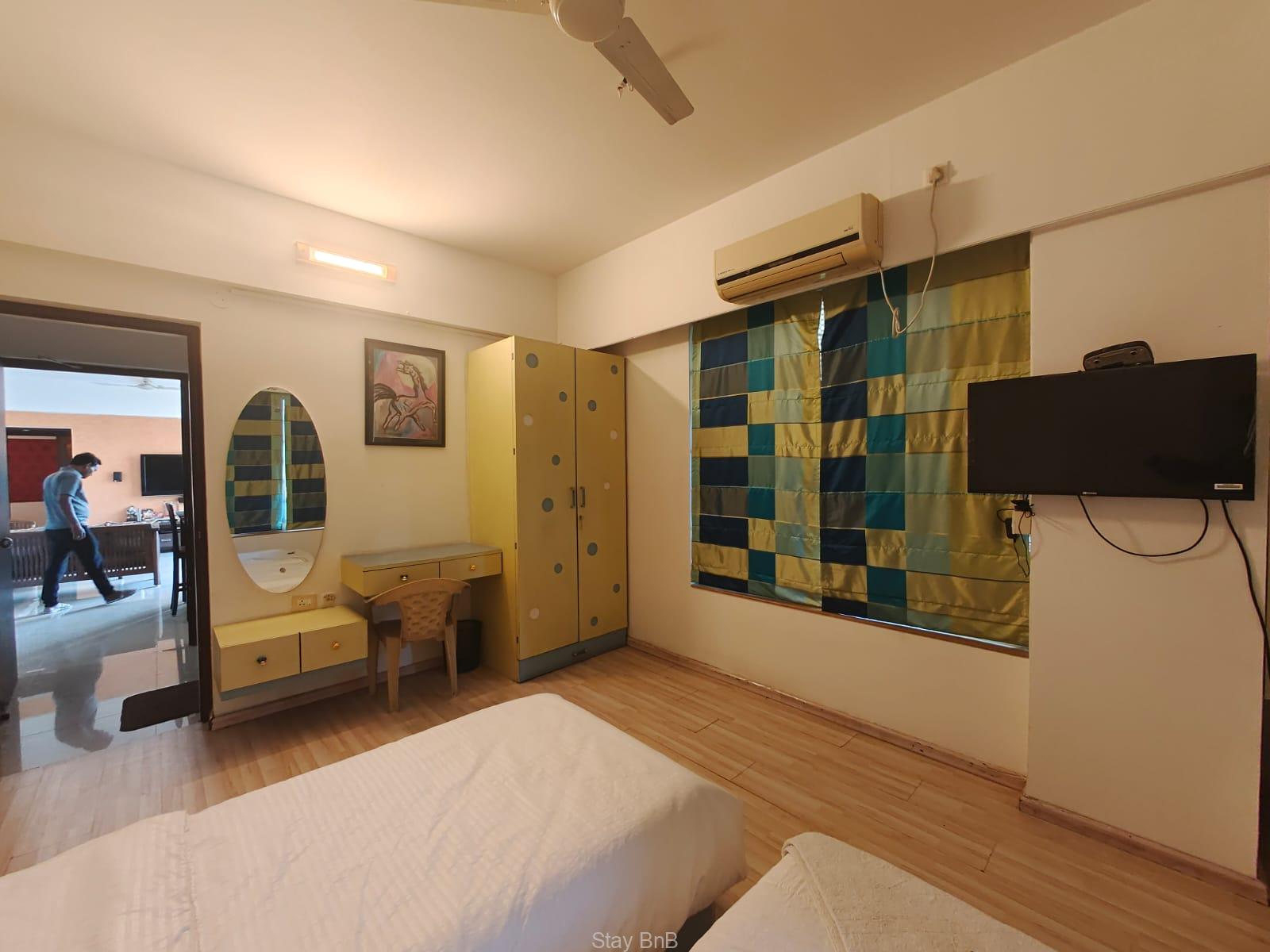 StayBnB offers 3bhk service apartments with kitchen in Viman Nagar for Corporate families, NRI Families, Foreign Expats and corporates group booking. Book this beautiful and specious 3BHK service apartments with 3 bedrooms . The apartments is 1200 sq ft with 2 attached washrooms and 1 non attached . All 3 Rooms in service apartments at our Ganpati chowk Viman Nagar, Pune. Its beautiful society with 24/7 Security guards, CCTV in Lift and Common areas.