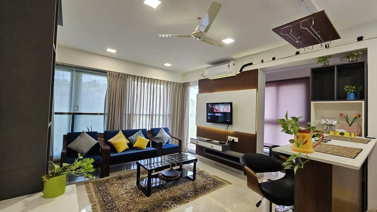 Explore this fully furnished and well decorated studio service apartments near Pashan Hills that gives forest green view with fresh air that makes guest to feel fresh and stay active for a whole day. This air conditioned and tastefully designed apartment features Ultra King-Size Bed to Rest easy on a spacious, comfortable bed. Fully equipped modern kitchen that allows guests to Cook delicious meals with ease. Modern bathroom with all modern fittings. Dedicated Workspace that specially designed to Stay productive. Balcony that offers ample natural light and breathtaking views.