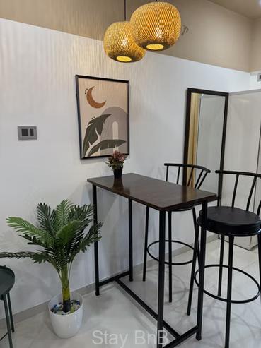 Reap the benefits of modern amenities like a Smart LED TV, high-speed WiFi network, refreshing air conditioning(AC), and plenty of natural light and ventilation. A fully equipped modern kitchenette area comes with an induction cooktop and a separate dining area is perfect for guests who love to cook.