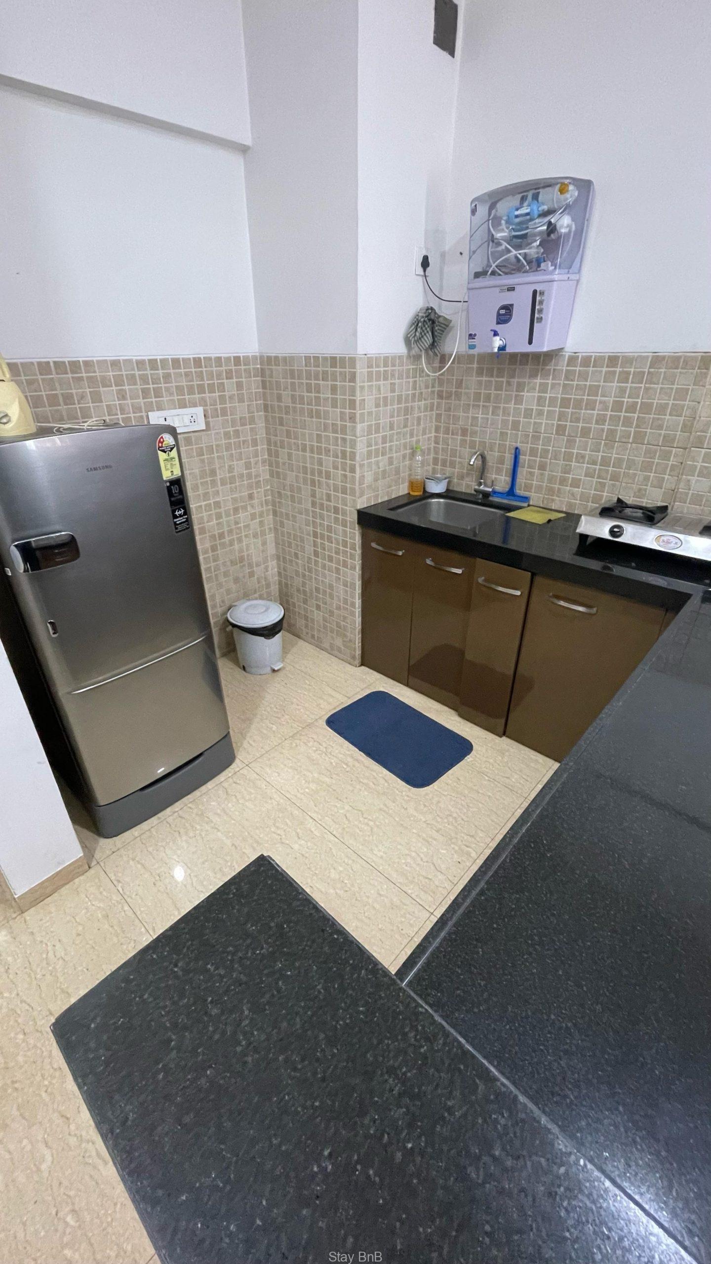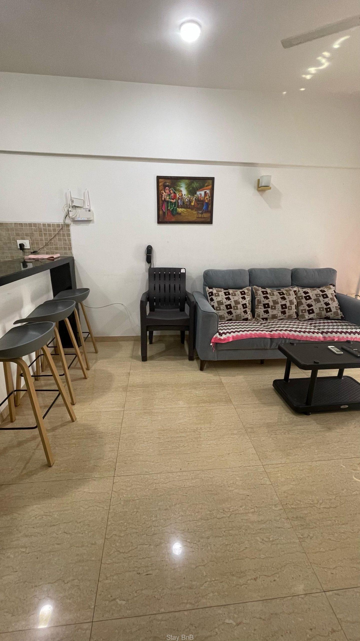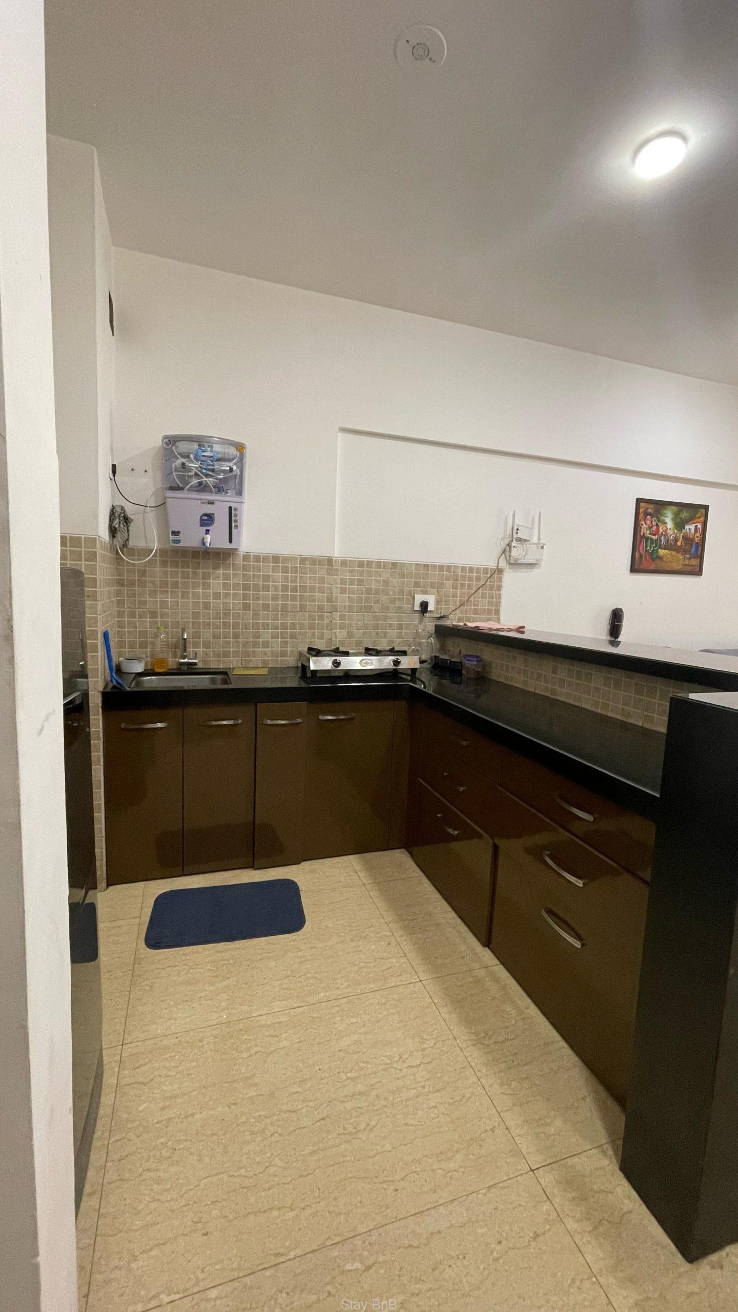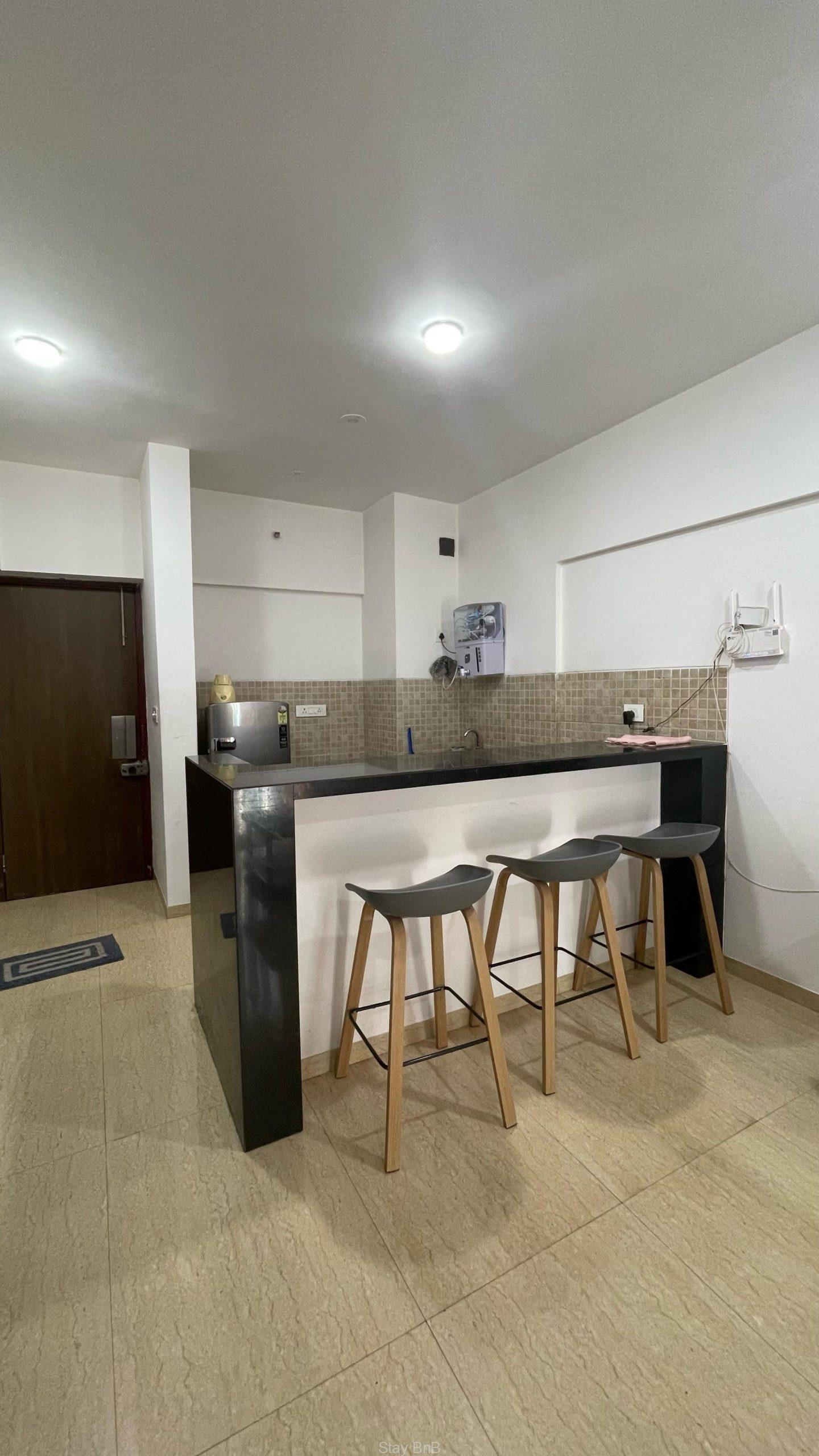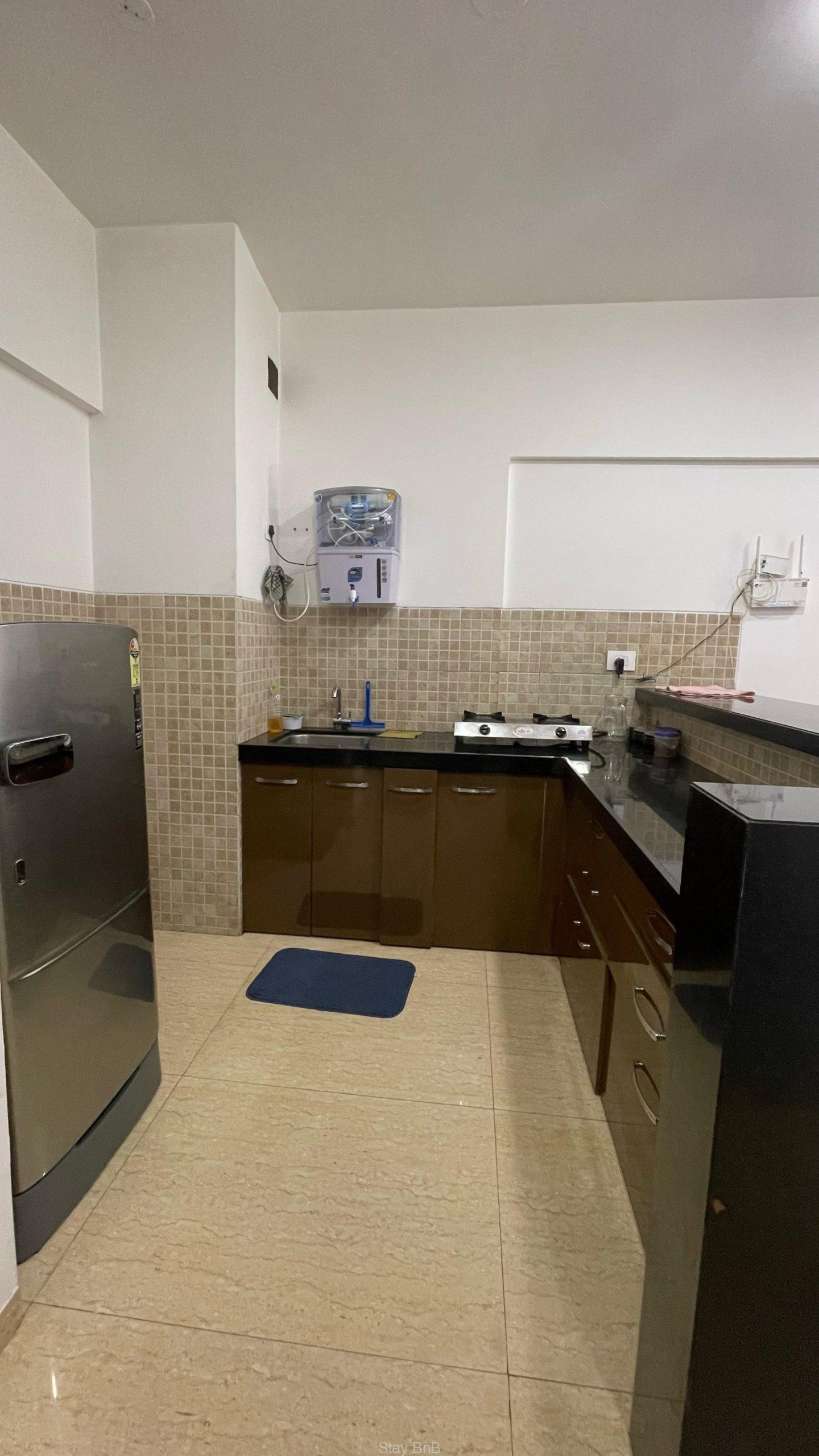 This managed apartment in Pune features spacious layout with stylish interiors and ample natural light with fresh air. This fully furnished service apartment includes comfortable bed, sofa and storage units. Modern and well equipped kitchenette fitted with essential appliances like refrigerator, cooktop, water purifier etc. Luxury bathroom has modern fittings with 24/7 hot water supply. This beautiful service apartment having Balcony with scenic views overlooking lush greenery surroundings of Lodha Belmondo.
