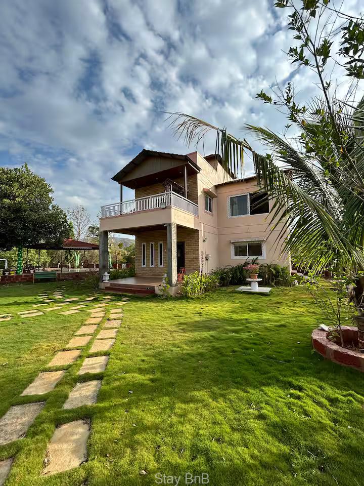 Escape the hectic city life and enjoy at this 3 BHK villa guest house in Mulshi, Pune. This villa built in 1 acre area and the area surrounded by lush green garden that offers a blend of luxury, privacy ad nature.