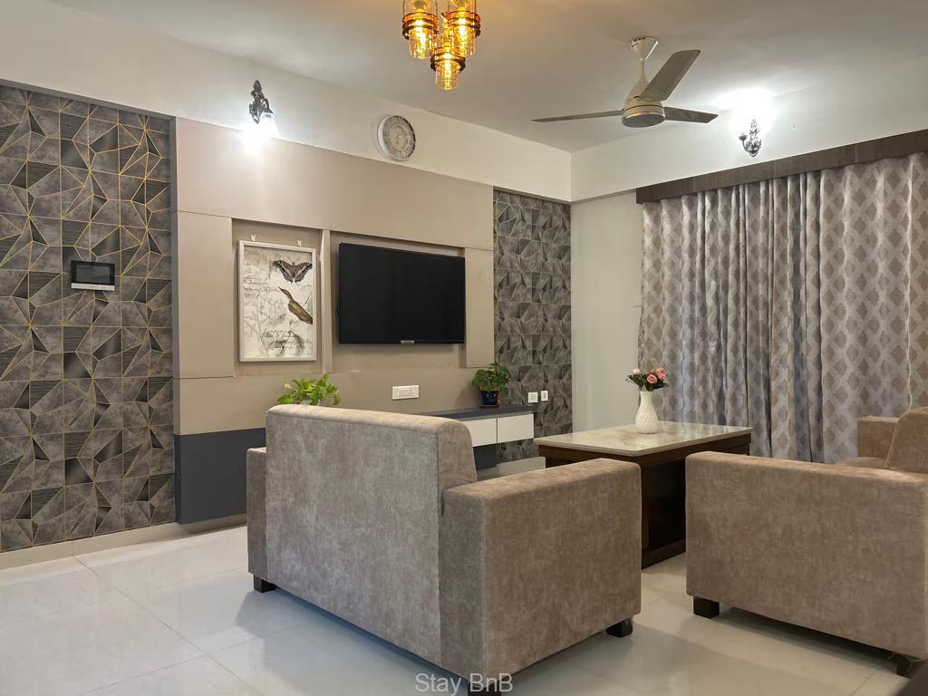 Indulge luxury in this precisely designed 2 BHK service apartment situated in the prime location of Viman nagar in Pune. This stay is ideal for corporate professionals, expats and long stay travelers, this fully furnished apartment offers a perfect modern living.
