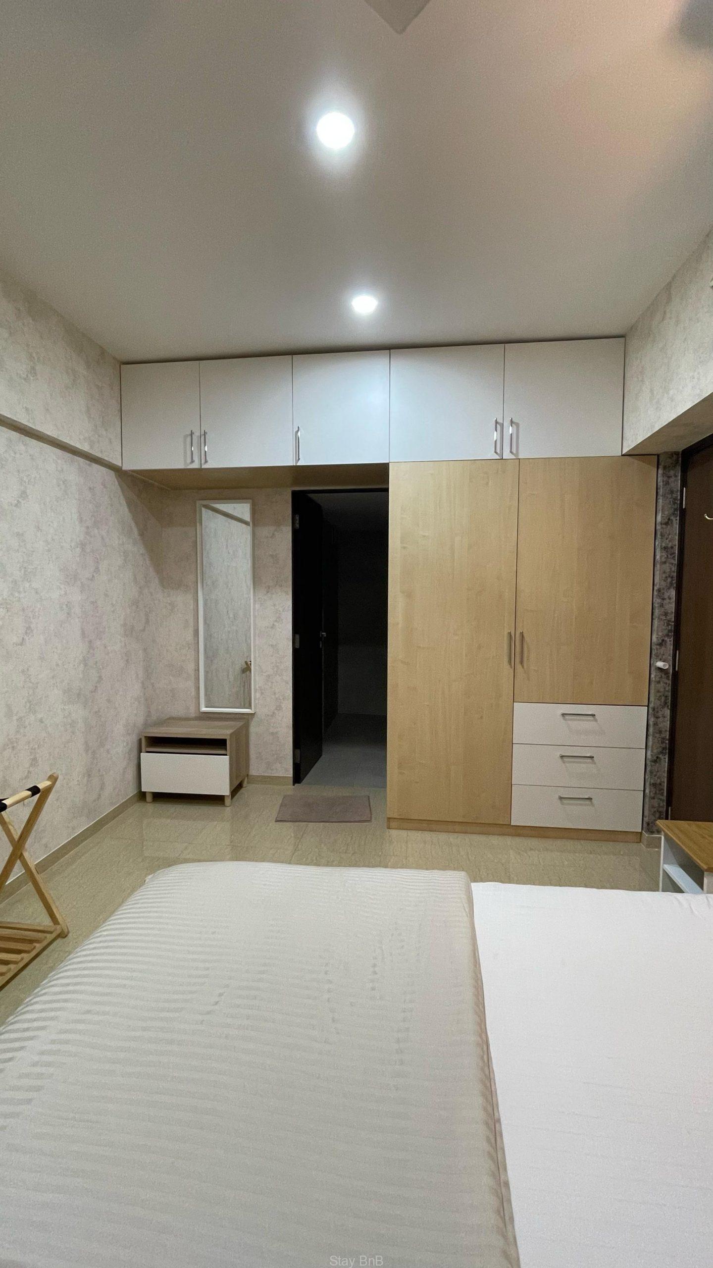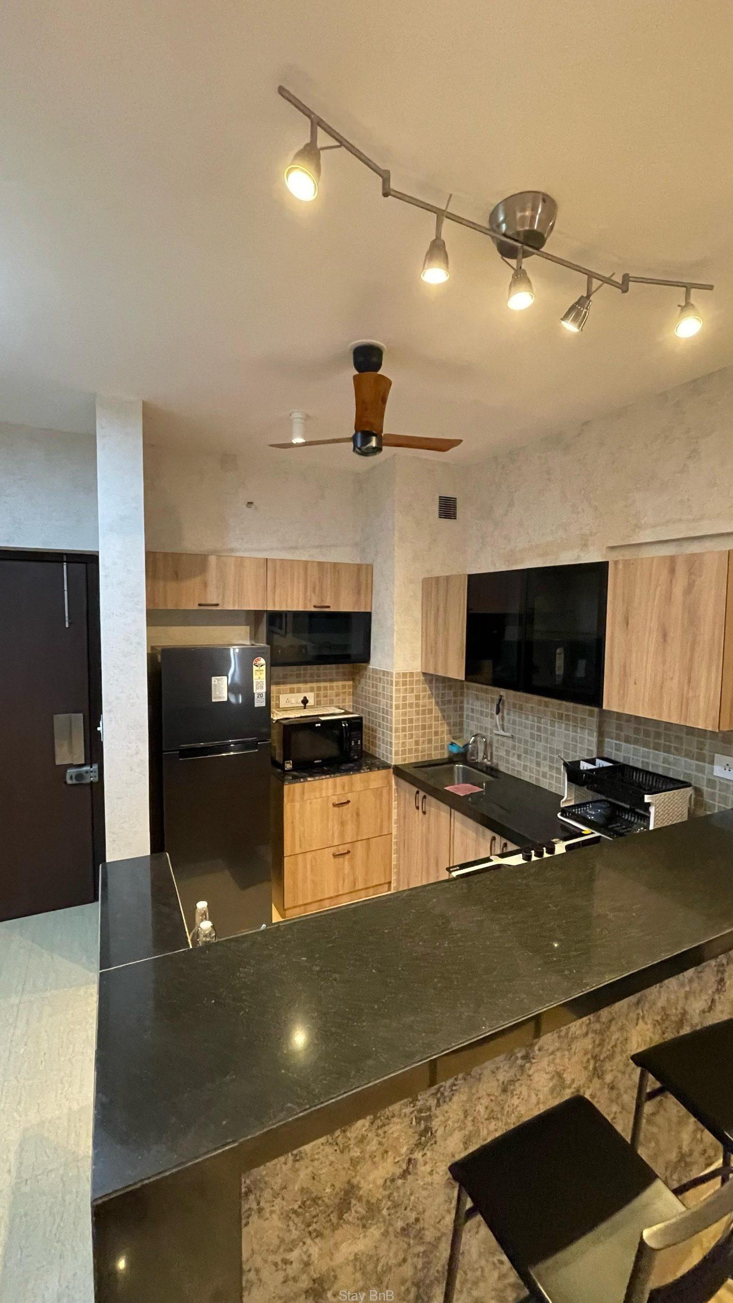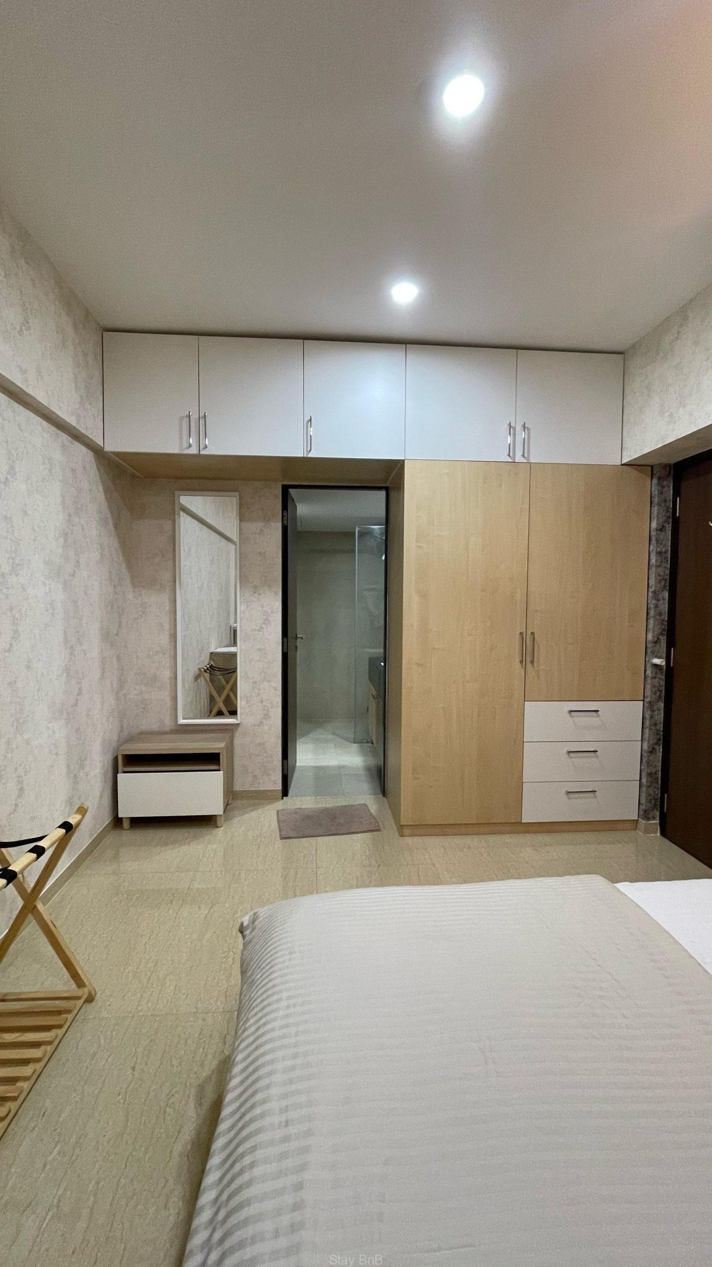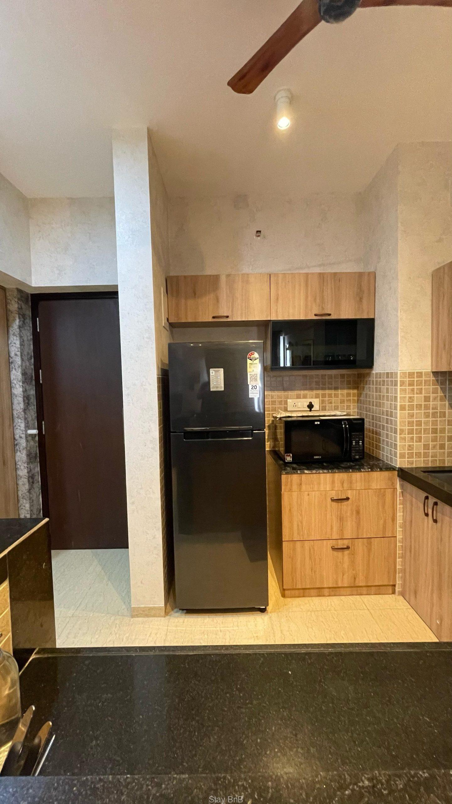 This managed apartment in Pune features spacious layout with stylish interiors and ample natural light with fresh air. This fully furnished service apartment includes comfortable bed, sofa and storage units. Modern and well equipped kitchenette fitted with essential appliances like refrigerator, cooktop, water purifier etc. Luxury bathroom has modern fittings with 24/7 hot water supply. This beautiful service apartment having Balcony with scenic views overlooking lush greenery surroundings of Lodha Belmondo.