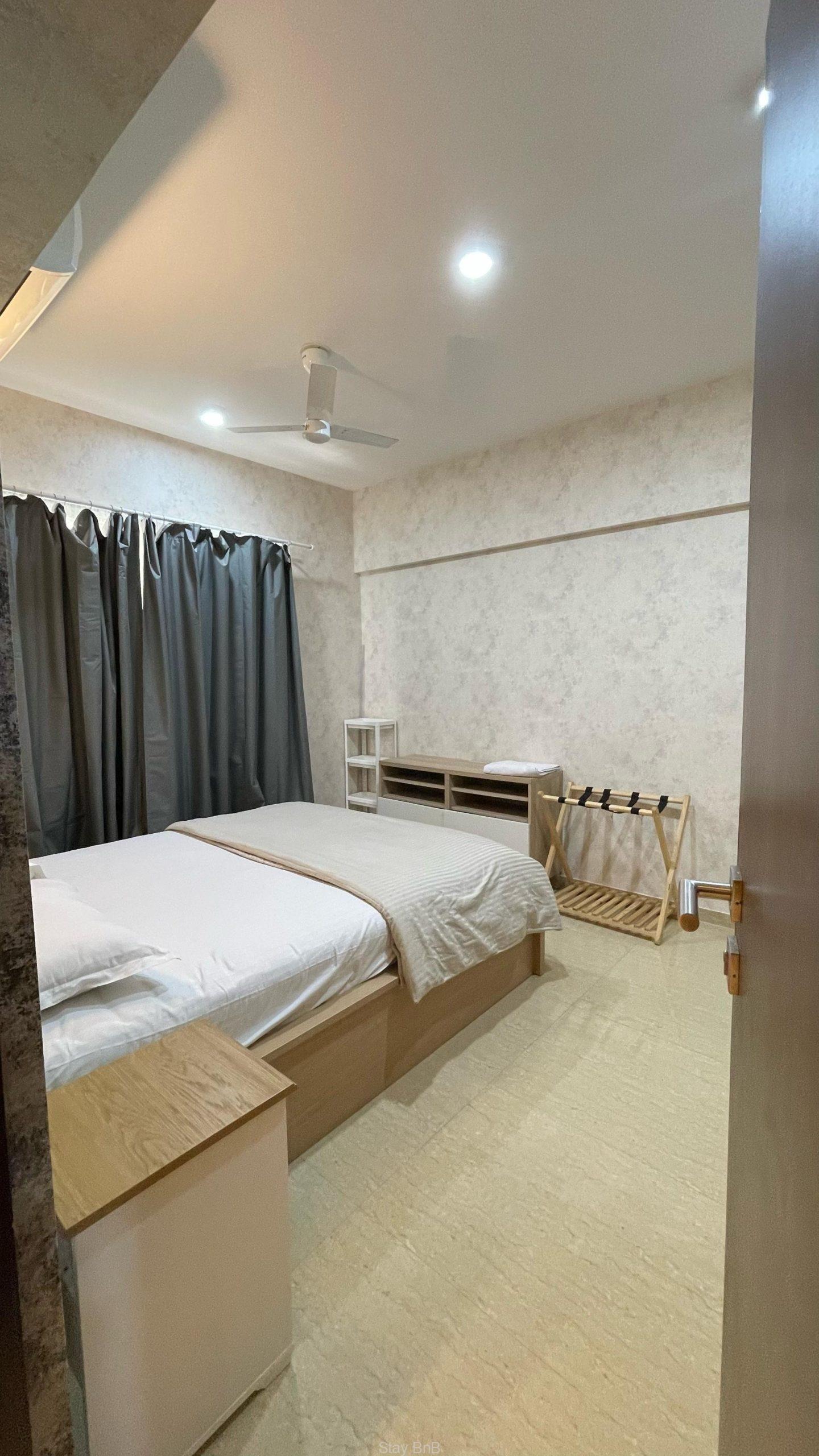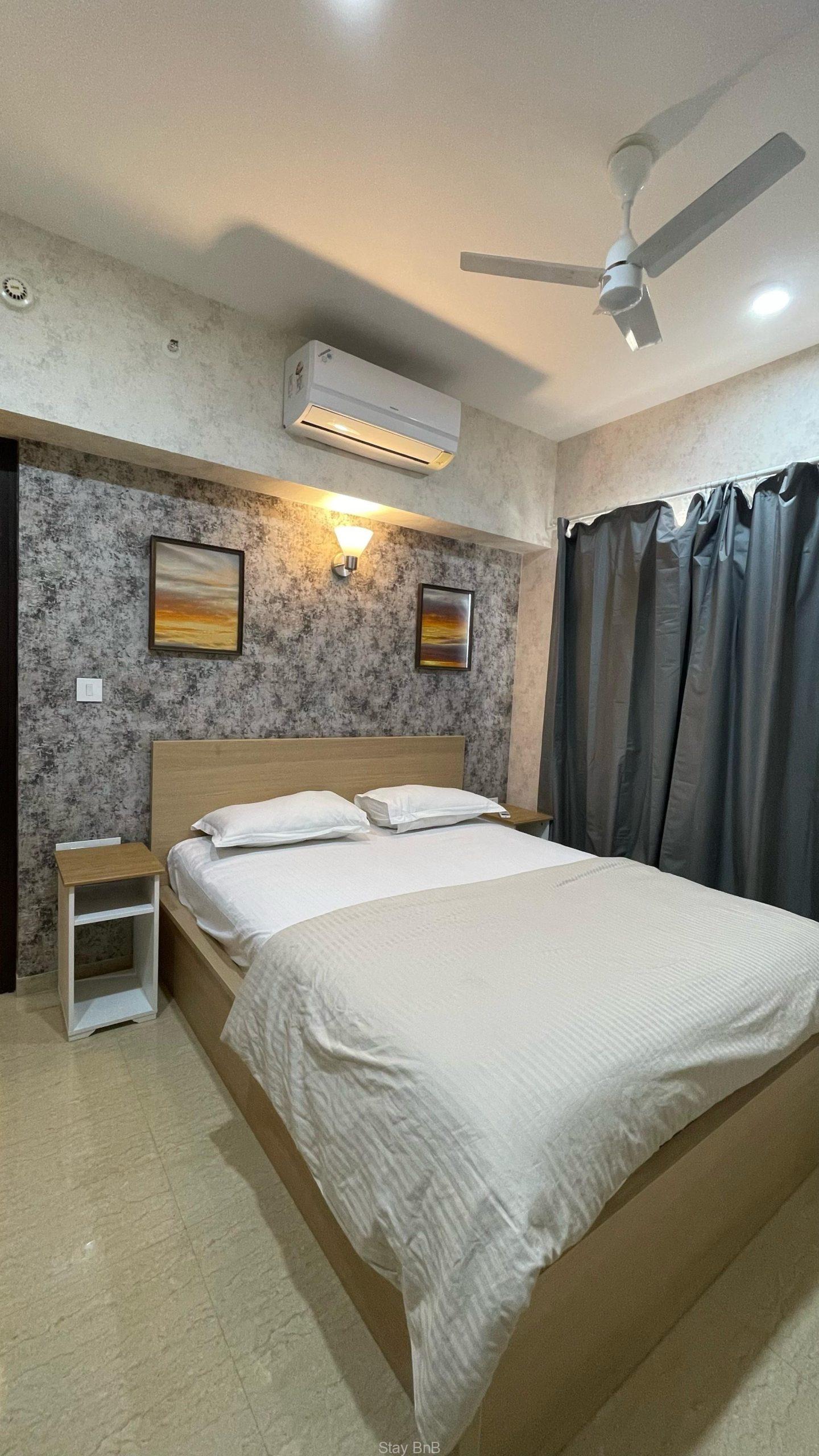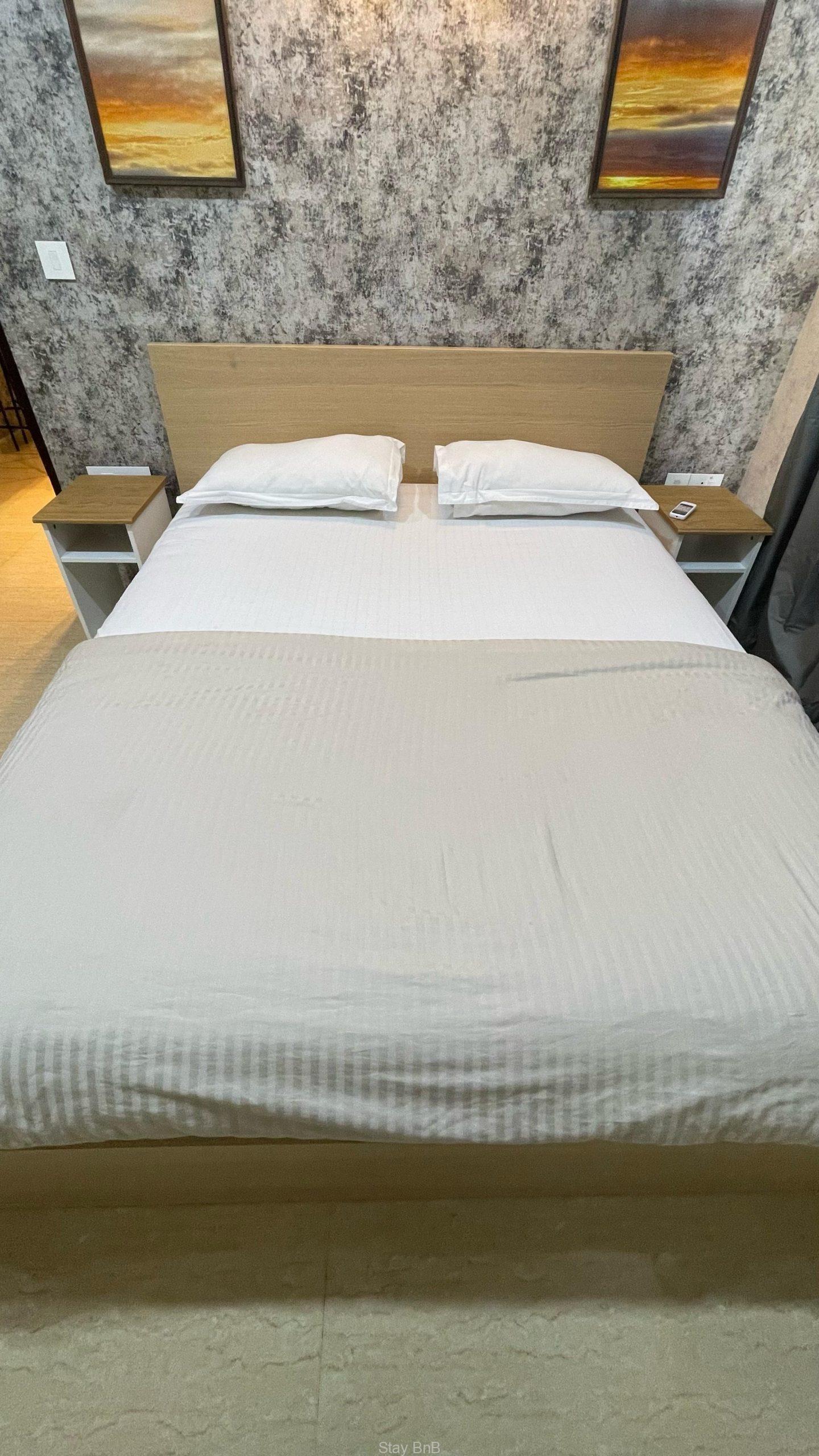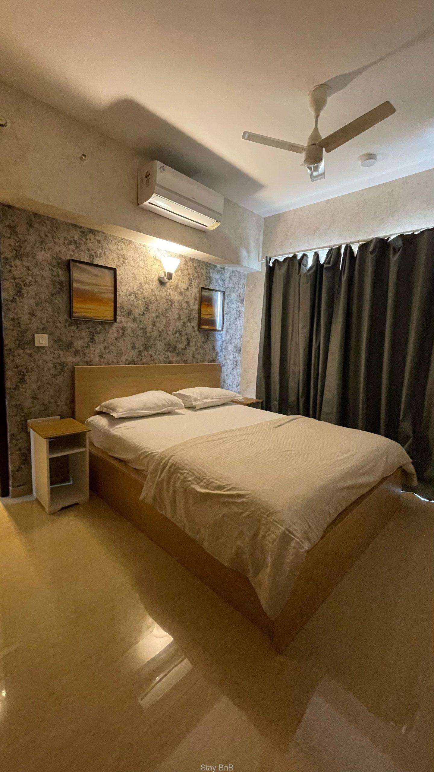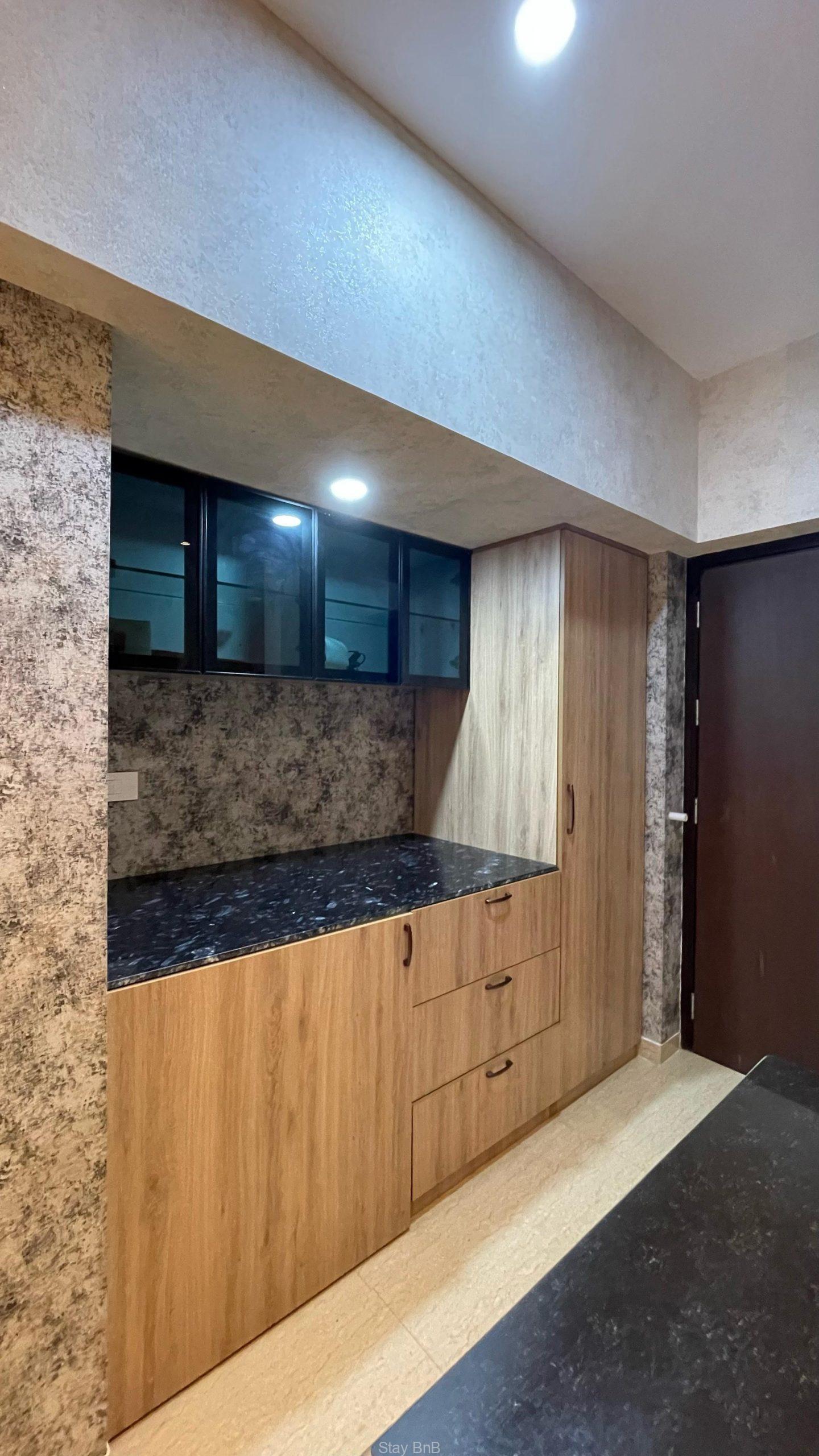 This managed apartment in Pune features spacious layout with stylish interiors and ample natural light with fresh air. This fully furnished service apartment includes comfortable bed, sofa and storage units. Modern and well equipped kitchenette fitted with essential appliances like refrigerator, cooktop, water purifier etc. Luxury bathroom has modern fittings with 24/7 hot water supply. This beautiful service apartment having Balcony with scenic views overlooking lush greenery surroundings of Lodha Belmondo.