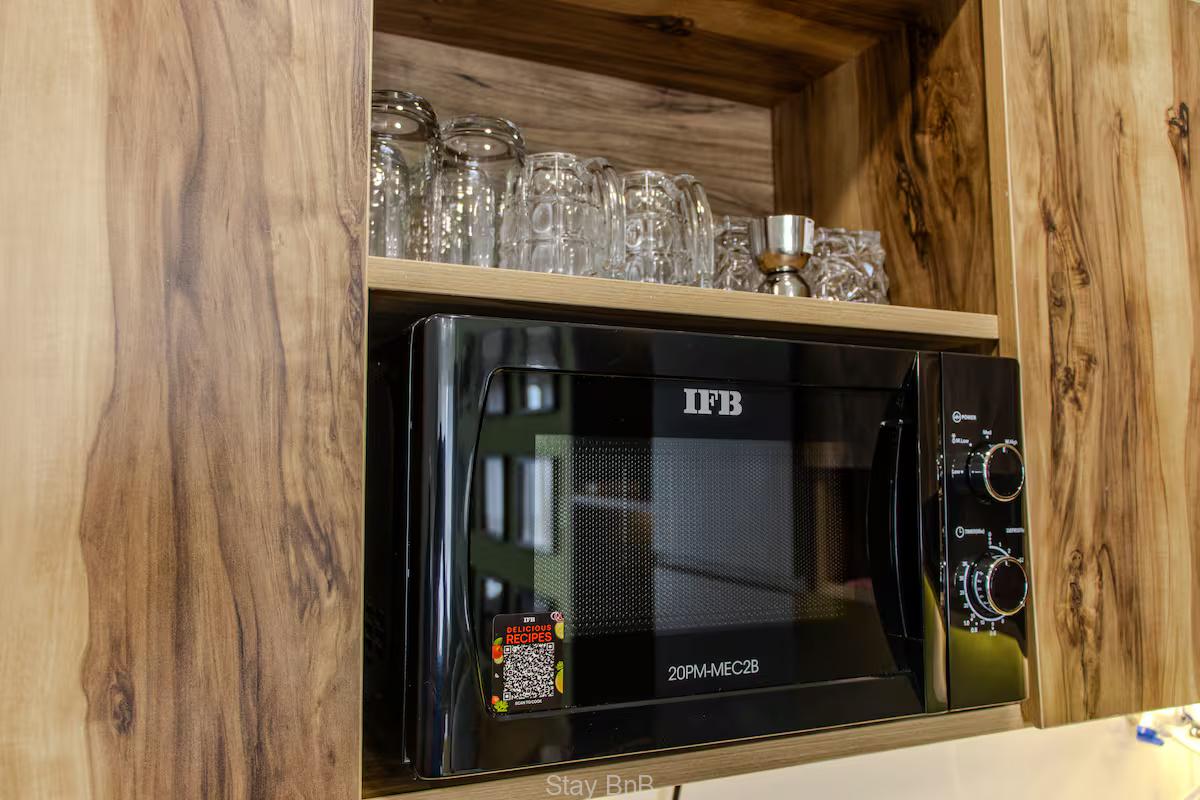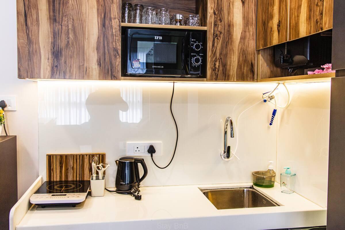 Explore this fully furnished and well decorated studio service apartments near Pashan Hills that boasts 320sq.ft and gives forest green view with fresh air that makes guest to feel fresh and stay active for a whole day. This air conditioned and tastefully designed apartment features Murphy’s King-Size Bed that can be Folds up for spacious living, fully equipped kitchenette which contains induction plate , microwave, fridge, coffee maker, and kitchenware. High-speed WiFi & Smart TV that allows stream shows on Prime, Hotstar etc. Dedicated Workspace designed with Modern desk and ergonomic chair for productivity. Air conditioning for year-round comfort.